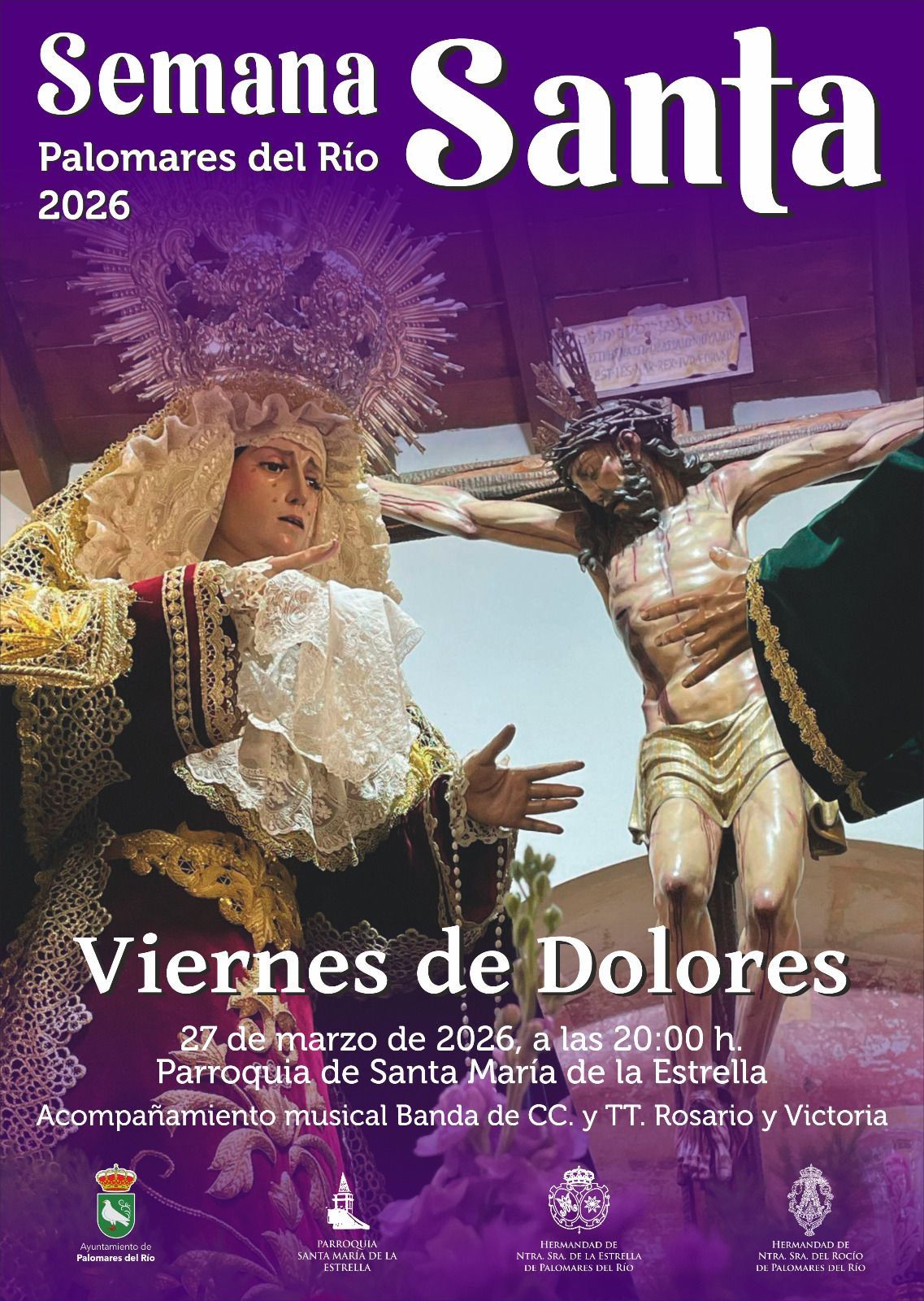 La procesión del Viernes de Dolores en Palomares del Río, organizada por la Hdad Ntra Sra de la Estrella Palomares del Río junto a la Hermandad de Nuestra Señora del Rocío de Palomares del Río dará comienzo a las 20:00 h desde la Parroquia.