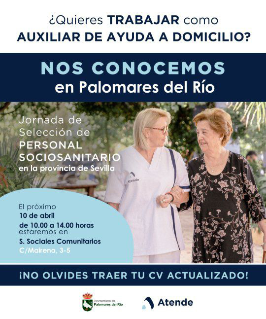 ¡Esta es tu oportunidad! La empresa Atende celebra una Jornada de Selección de Personal Sociosanitario en Palomares del Río.