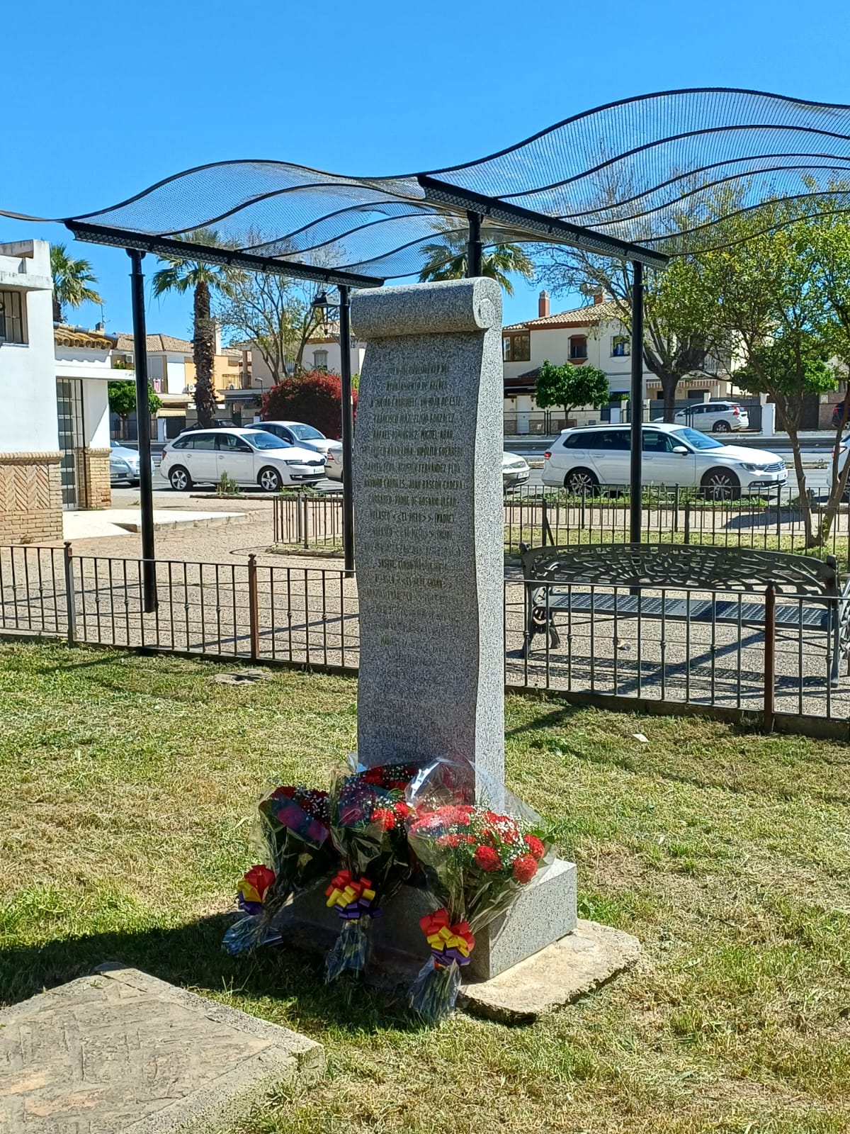 La cita ha tenido lugar en la plaza Duque de Alba, donde se ubica el monolito en memoria a las víctimas de la Guerra Civil y la posguerra españolas. Un monolito que fue colocado en 2005 en recuerdo a todos los/as gelveños/as asesinados/as durante ese periodo histórico. Un monumento que, gracias a un acuerdo plenario de las fuerzas de izquierda en el consistorio, será restaurado y completado próximamente, con nombres de víctimas gelveñas que se han descubierto después de su colocación. Todo ello para que la memoria histórica de Gelves esté más completa.