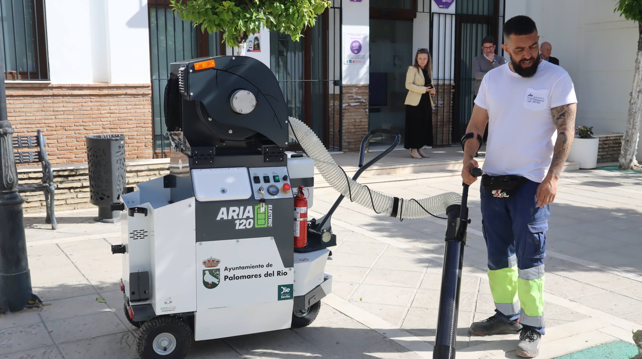El alcalde Manuel Benjumea, acompañado de la delegada del área #PalomaresDinámico Joaqui Gómez, ha señalado que esta incorporación supone un impulso para seguir cuidando el entorno urbano.